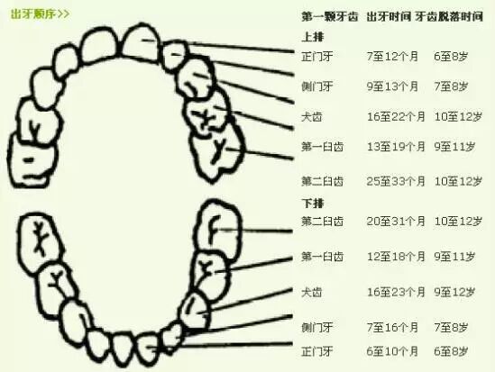 中切牙(正门牙):下颌6个月;上颌7个半月。